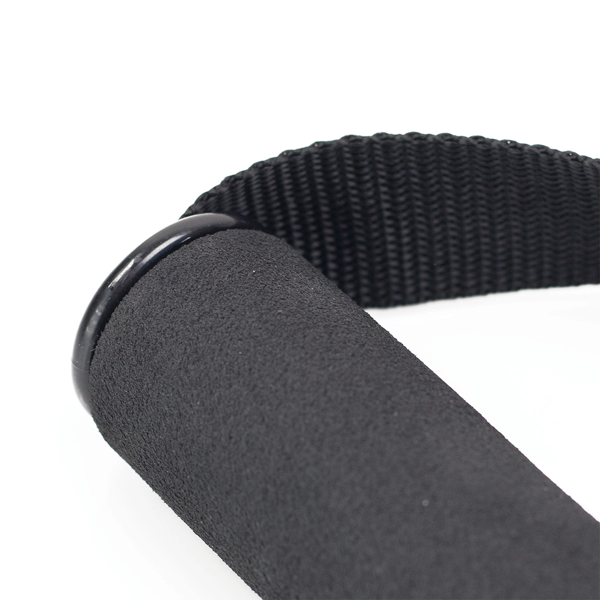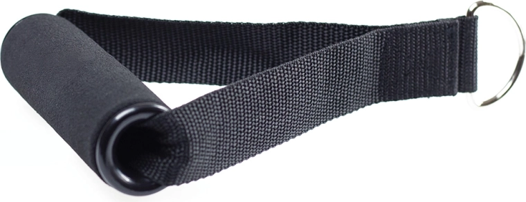 Le tissu en nylon robuste et les anneaux métalliques assurent une fixation sûre aux bandes de résistance ou aux poulies.