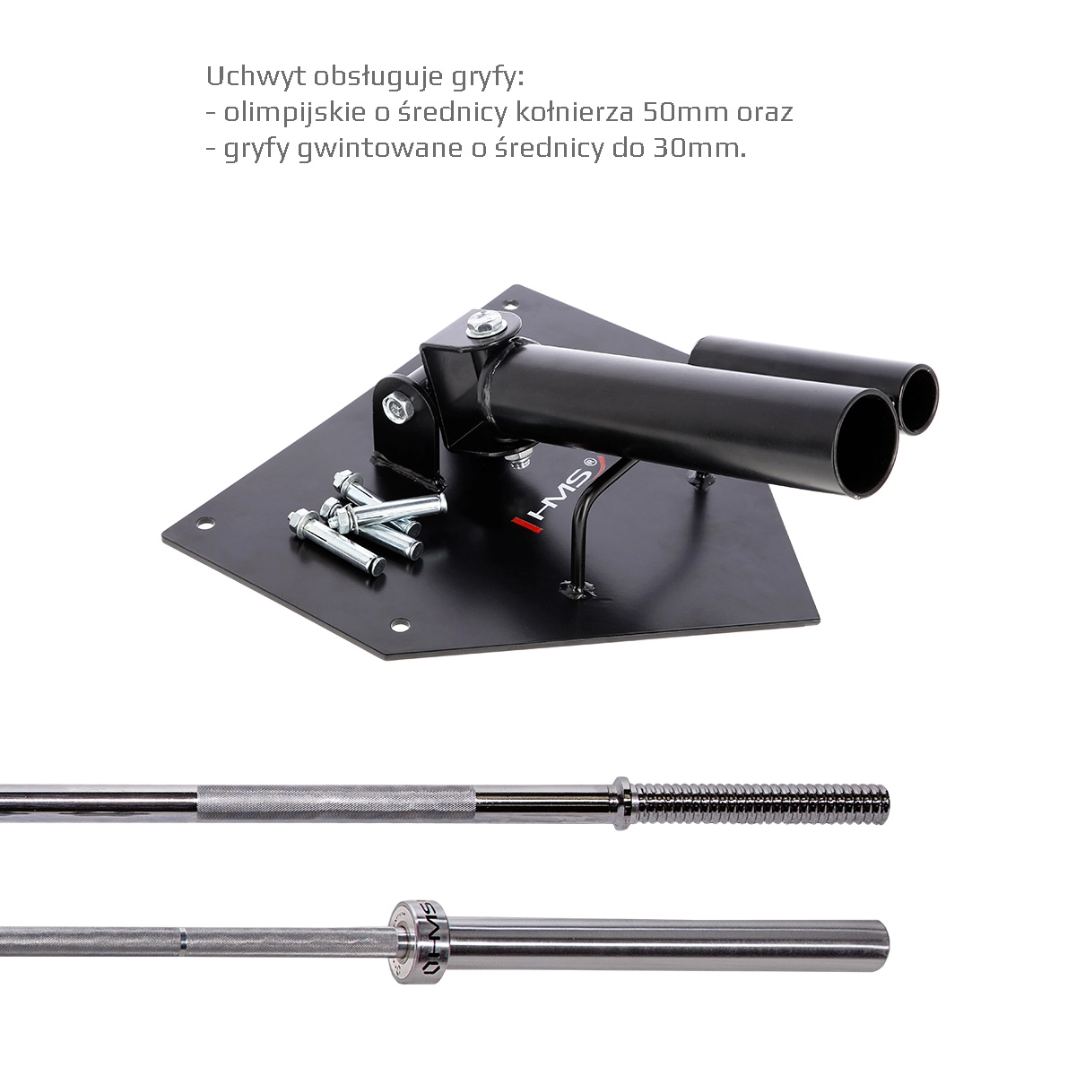 Le HMS UCG01 est un support articulé mural/au sol fiable pour barre olympique ou standard, qui élargit vos possibilités d’entraînement de force et de condition physique. Le double joint permet une conduite du mouvement fluide et sûre sur une « demi-sphère » – idéal pour les poussées, tirages, squats avec rotation, landmine press ou exercices d’anti-rotation. L’extrémité libre de la barre se charge facilement avec des disques selon les besoins.