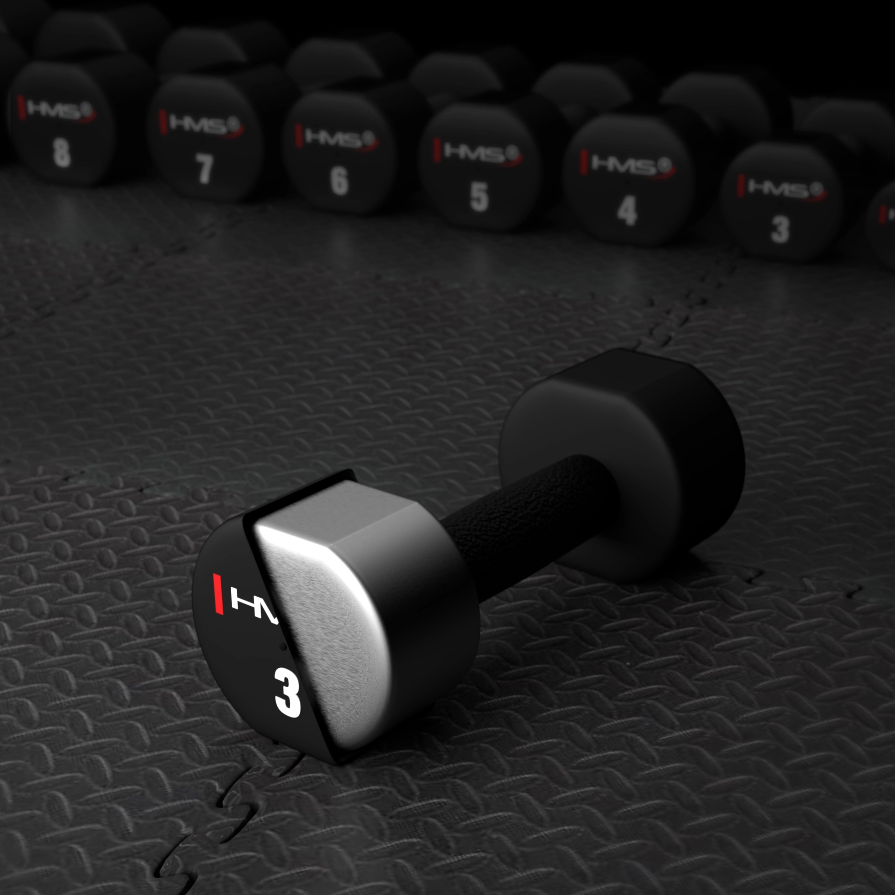 Paire d’haltères de qualité HMS HPT03 de 2 × 3 kg alliant un noyau en acier et un revêtement durable en TPU pour une longue durée de vie et un grand confort. Elles offrent une prise en main sûre et ergonomique, un fonctionnement silencieux avec protection du sol et une haute résistance aux chocs et à l’abrasion – idéales pour l’entraînement à domicile comme en salle.