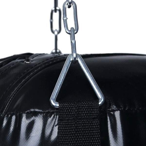 Les chaînes soudées et l’anneau de suspension pivotant assurent un mouvement fluide du sac et empêchent l’enroulement des chaînes. Les œillets triangulaires protègent les sangles contre les dommages.