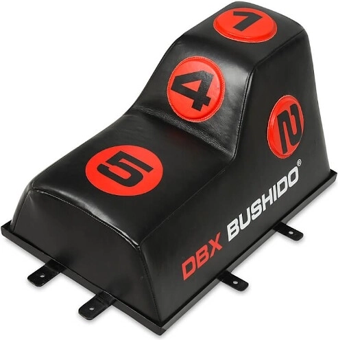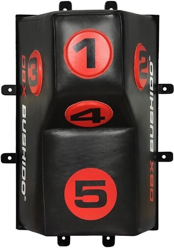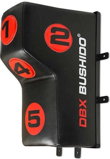 Cible murale professionnelle DBX BUSHIDO avec relief conique et 5 zones numérotées, idéale pour crochets, coudes et genoux. Elle combine cuir bovin naturel et rembourrage en polyuréthane haute densité pour une excellente absorption des impacts et une longue durabilité même en entraînement intensif. Complément parfait au sac de frappe classique pour précision, vitesse et enchaînements.
