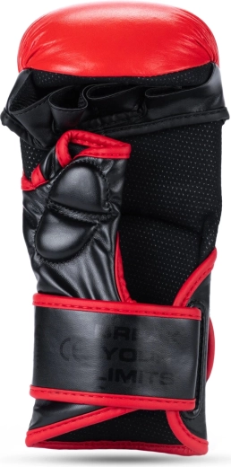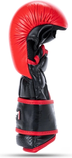 La zone de frappe est en cuir bovin naturel de haute qualité pour une grande durabilité, tandis que le manchon est en cuir synthétique renforcé innovant pour une fixation ferme. Un évidement étudié au niveau du velcro évite les accrochages et ouvertures involontaires lors du grappling. L’intérieur des gants est doté d’une doublure lisse pour un confort sans frottements.