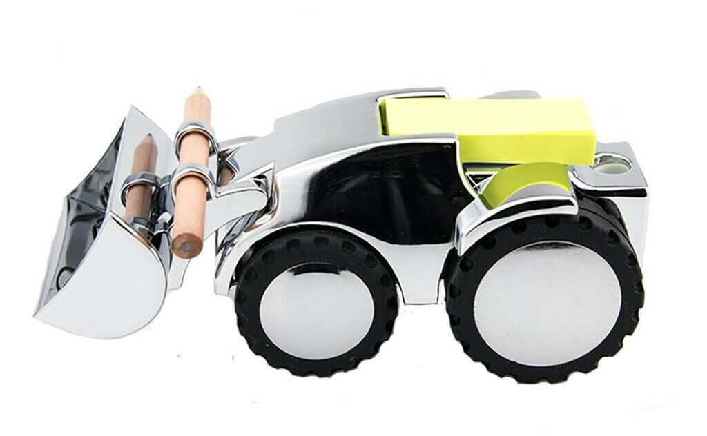 Un organiseur de bureau stylé en forme de pelleteuse qui allie design ludique et fonctionnalité intelligente. Il offre un aimant pour trombones, un taille-crayon, un porte-stylo/crayon avec 1 crayon inclus et un distributeur de notes autocollantes (80 feuilles) – tout au même endroit pour un bureau bien ordonné.