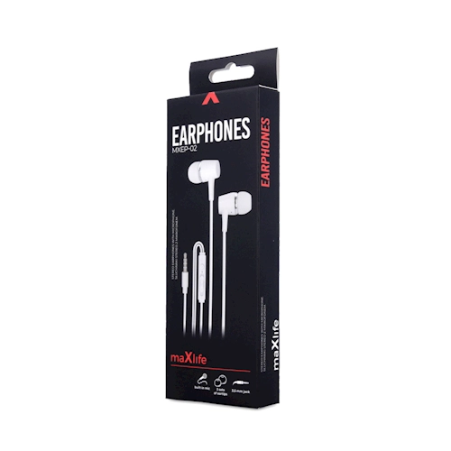 Écouteurs filaires Maxlife MXEP-02 légers et confortables en blanc pour l'écoute quotidienne en déplacement. Ils offrent un son clair, un microphone intégré pour les appels mains libres et un jack universel 3,5 mm. Grâce au câble de 1,2 m, vous bénéficiez d'une liberté de mouvement et d'une connexion stable sans coupures.