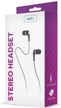 Écouteurs intra-auriculaires SETTY légers et confortables pour une écoute quotidienne avec connecteur mini‑jack 3,5 mm. Ils offrent un son stéréo clair, une plage de fréquences 20–20 000 Hz, une sensibilité de 100 dB et un câble de 1 m pour une liberté de mouvement. Idéals pour téléphones, lecteurs et ordinateurs portables. Sans microphone.