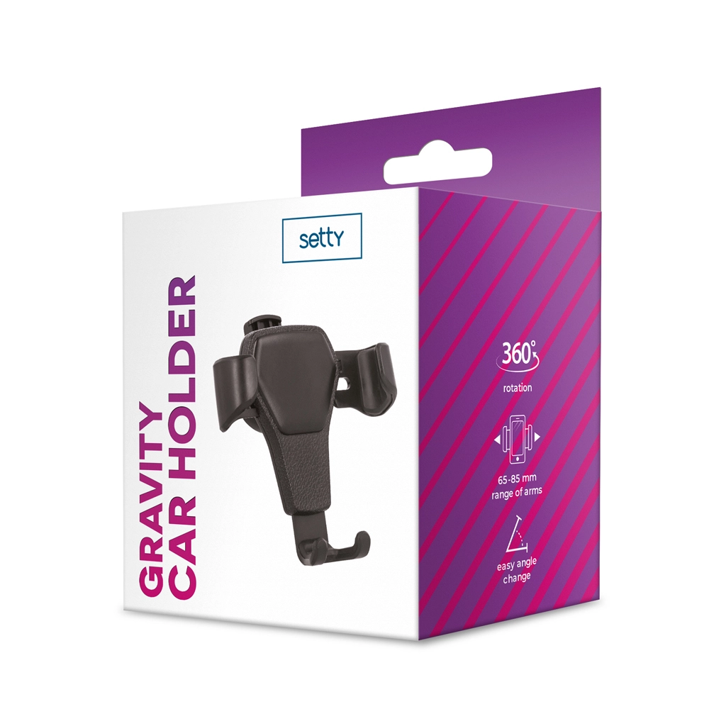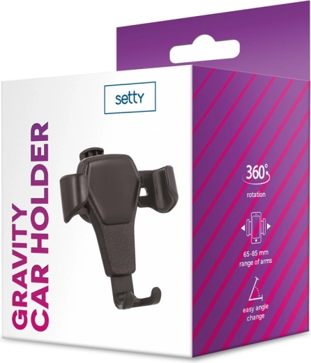 Profitez d’une navigation et d’un mode mains libres sûrs et confortables avec le support SETTY GUS-01, qui se fixe facilement sur la grille d’aération. Le mécanisme gravitationnel serre automatiquement le téléphone dès son insertion, sans aucun ajustement manuel. La construction stable maintient l’appareil fermement même sur les irrégularités et le protège contre les chutes.
