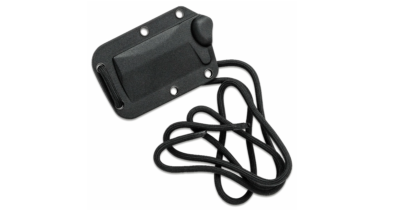Le manche texturé en Micarta, en finition noir‑vert, offre une prise en main sûre et confortable même lors d’un usage prolongé. L’emballage comprend un étui plastique léger pouvant être suspendu à la paracorde fournie pour un accès discret et rapide.