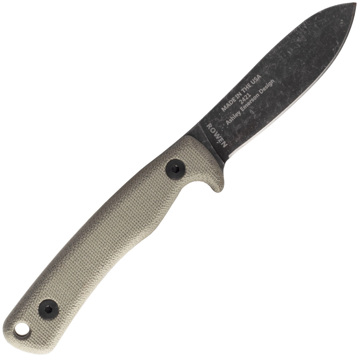- Lame fixe en acier au carbone 1095 avec finition Black Stonewash pour la durabilité et un entretien facile