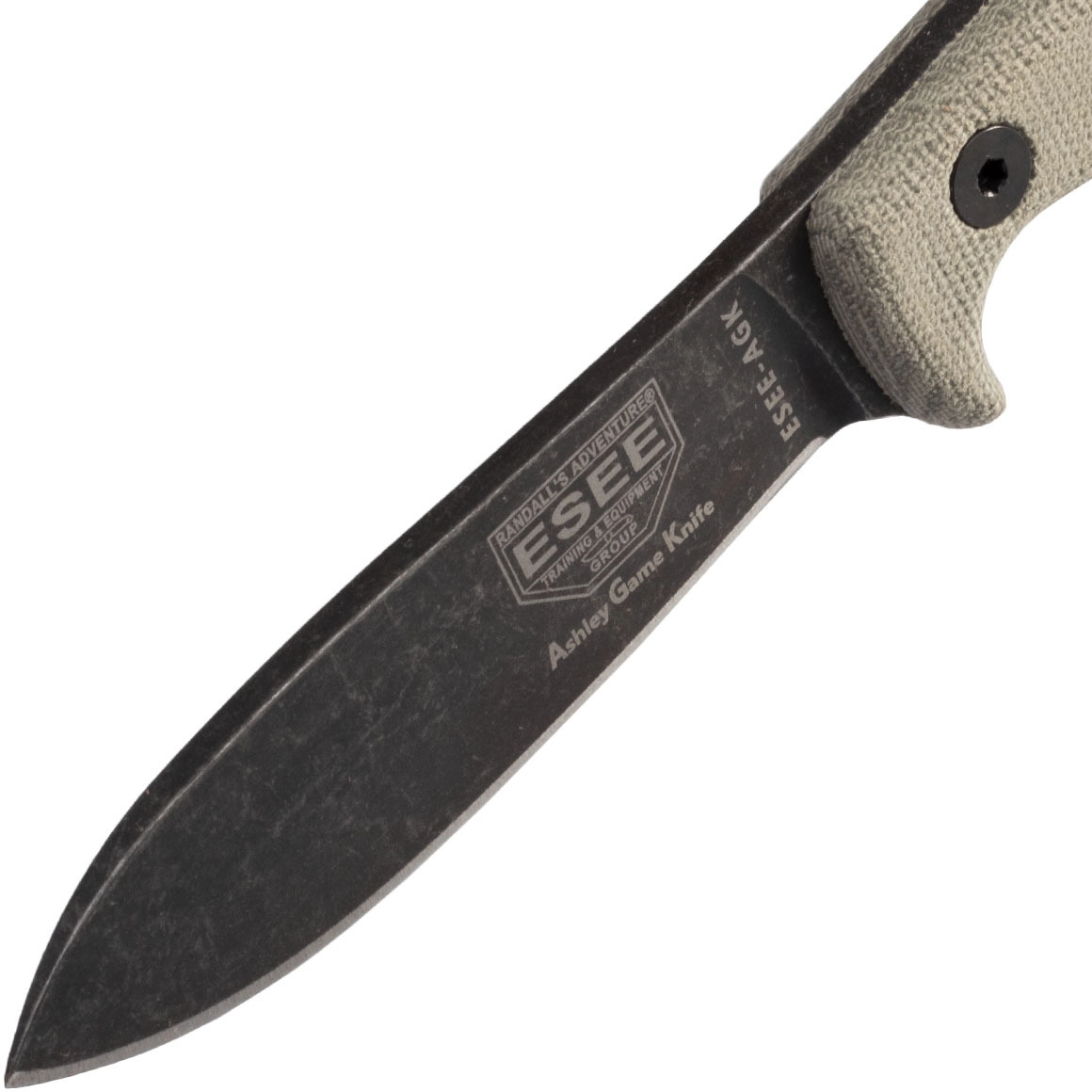Couteau de chasse ESEE AGK, 9 cm, Black Stonewash, Micarta grise, étui en cuir