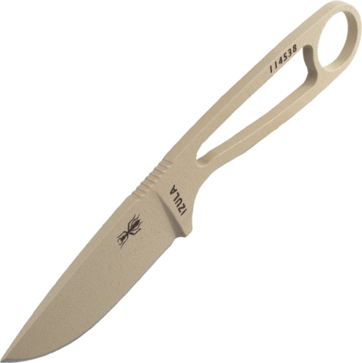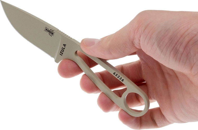L’ESEE Izula est un petit couteau fixe iconique, inspiré par la ténacité de la fourmi amazonienne. Sa construction intégrale full-tang en acier au carbone 1095 garantit une grande solidité et une fiabilité élevée pour la coupe, la sculpture et les travaux de précision. La finition résistante Desert Tan protège la lame contre la corrosion et réduit les reflets.