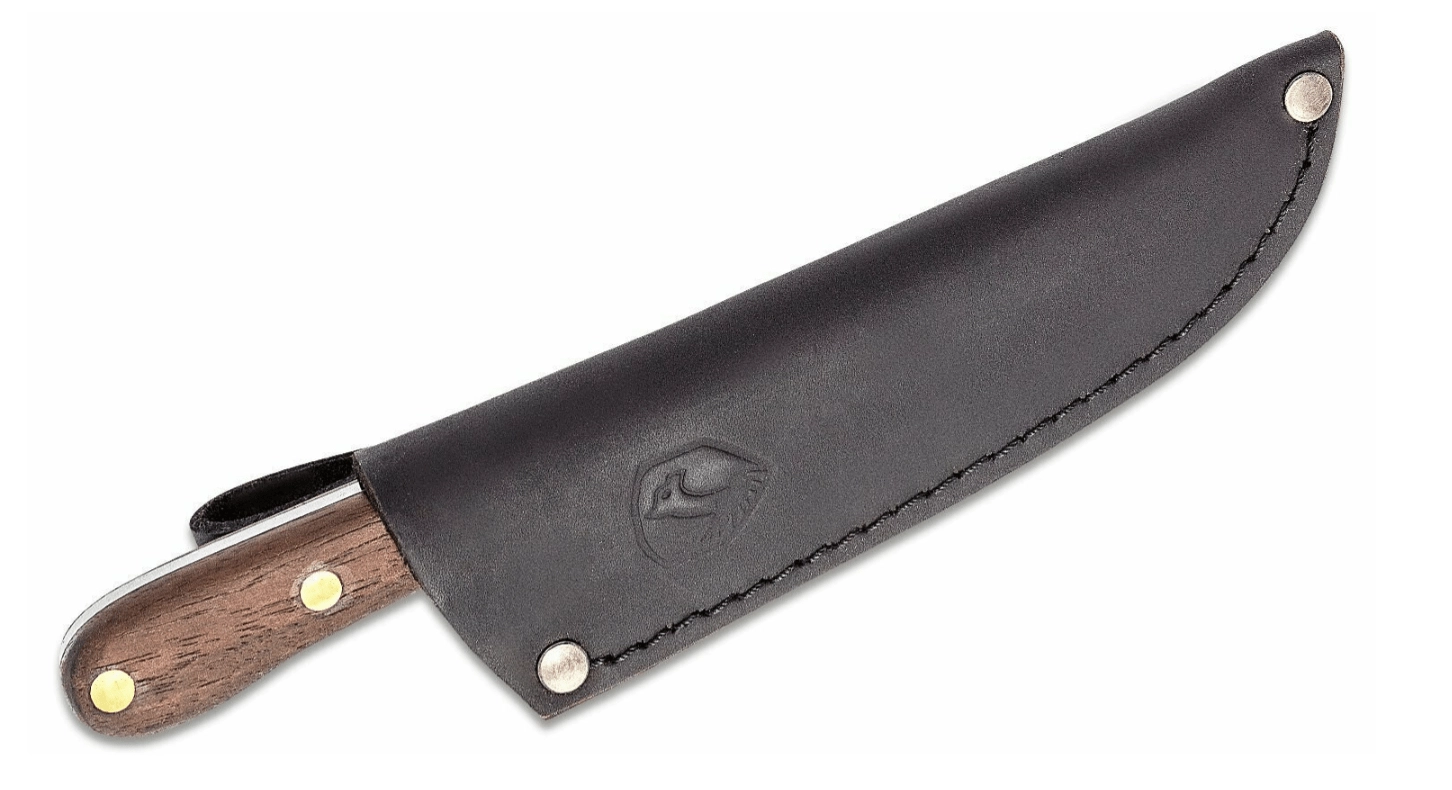 Le manche en noyer élégant tient fermement en main et assure un excellent contrôle de coupe. L’emballage comprend un étui en cuir pour un port sûr et stylé à la ceinture – un choix idéal pour quiconque veut un couteau pratique et durable sans poids superflu.