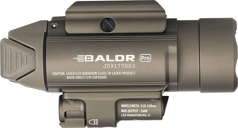 OLIGHT BALDR Pro en coloris desert est une lampe d’arme professionnelle combinant une LED blanc neutre avec une optique TIR précise et un laser vert pour une visée rapide et sûre. Elle offre trois modes d’utilisation : lumière blanche seule, lumière blanche + laser ou laser seul – selon la situation.