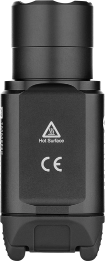Les interrupteurs arrière ambidextres permettent un allumage rapide, un mode momentané et l’activation immédiate du stroboscope. Grâce au bloc de montage coulissant à trois positions et aux adaptateurs 1913/GL, la lampe s’adapte facilement à différents rails de pistolet. L’électronique intégrée protège la LED – après 4 minutes en mode Turbo, la puissance est intelligemment réduite pour un refroidissement sûr et un éclairage stable.