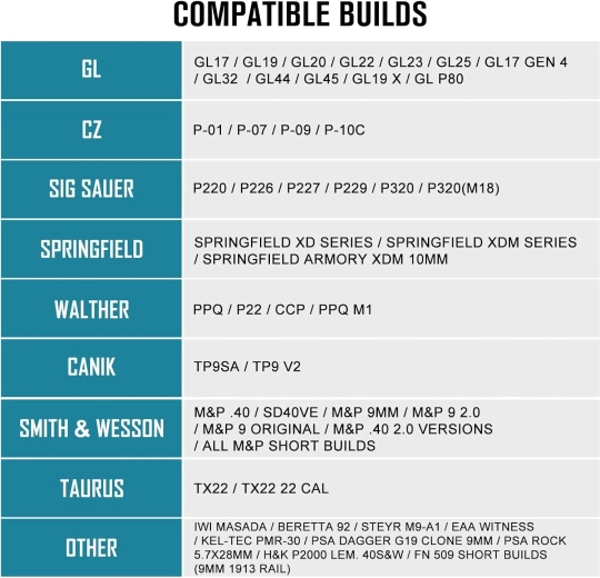 Compatibilité avec rails Picatinny 1913 et Glock (GL), bloc coulissant à trois positions et verrou à vis pour un montage ferme et reproductible.