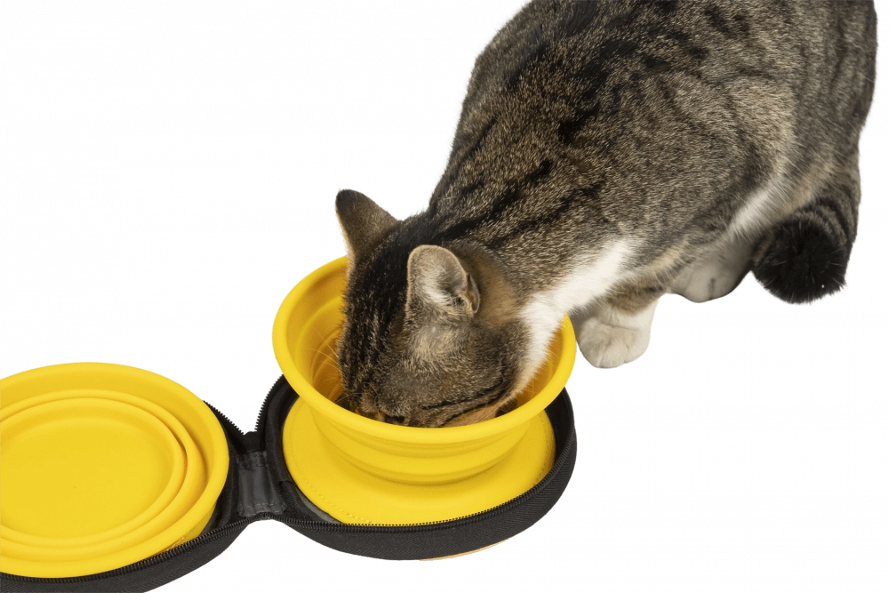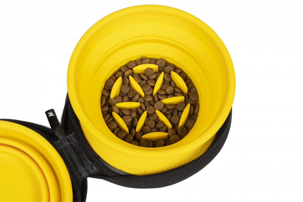 Pratique ensemble de voyage avec deux gamelles pliables en silicone de qualité, chacune d’une capacité de 350 ml – idéal pour la nourriture et l’eau de votre compagnon. L’une des gamelles est équipée d’une fonction slow feeder pour ralentir l’ingestion, l’autre sert de gamelle classique. L’ensemble est rangé dans une housse résistante avec scratch intérieur et fermeture éclair de qualité pour une fermeture sûre.