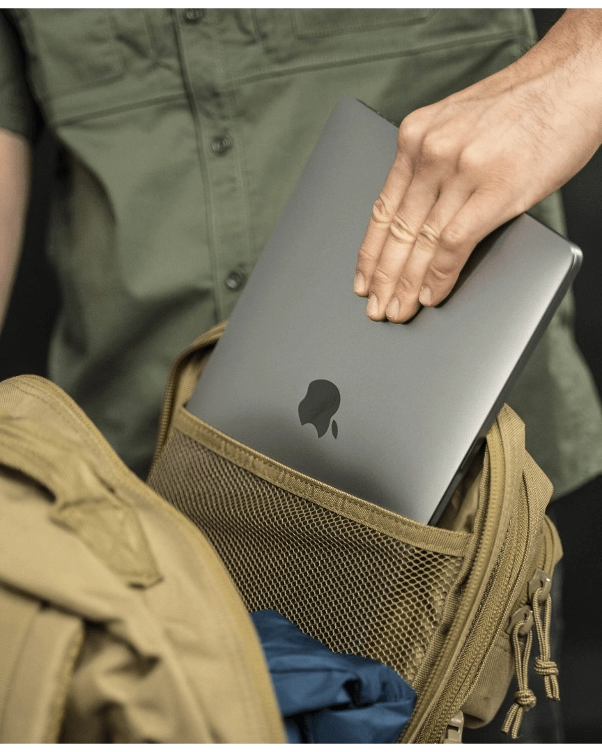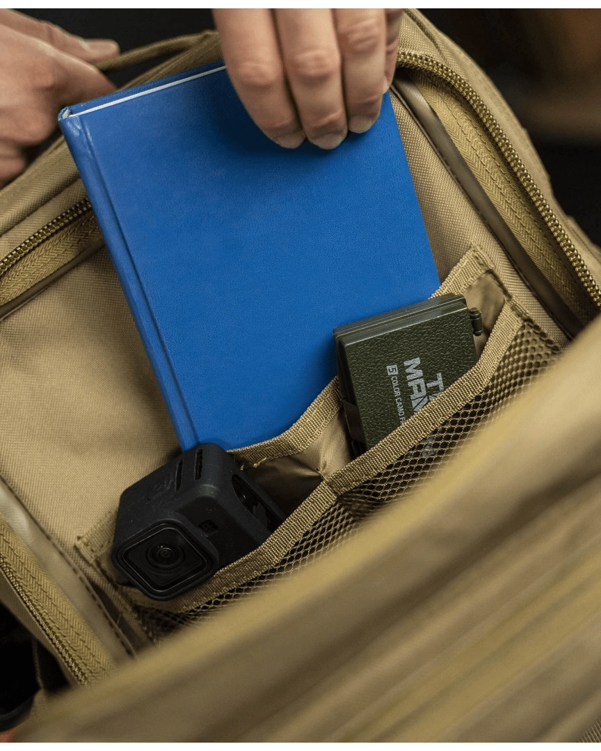 Deux compartiments indépendants, poches frontales et organiseurs internes gardent votre EDC et votre équipement plus volumineux bien rangés et facilement accessibles.
