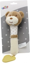 Mordeur en peluche pour bébés. Le jouet couine et possède un anneau de dentition en plastique. Dimensions du jouet : 24 cm. Convient aux enfants dès la naissance.