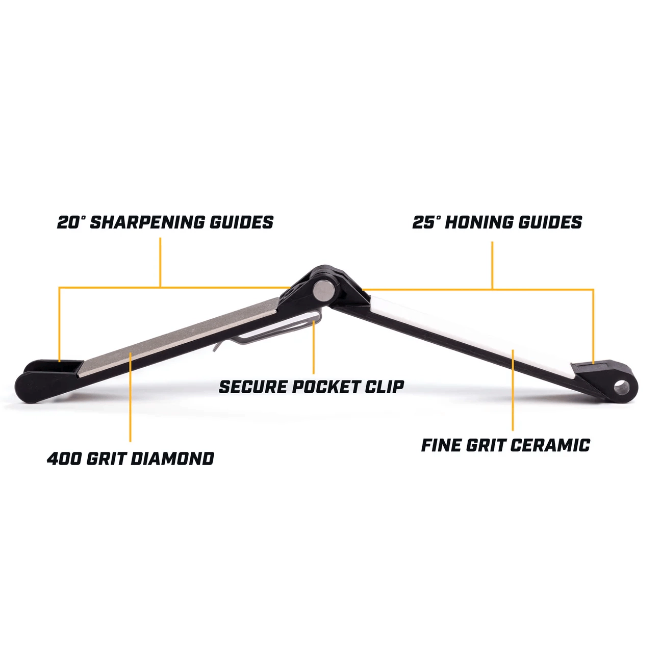 Vous cherchez un affûteur de poche fiable pour les voyages, l’atelier ou la nature ? Le WORK SHARP Folding Field Sharpener offre tout‑en‑un : une plaque diamantée 400 grit pour restaurer efficacement le tranchant et une céramique fine pour le polissage final. Les guides 20°/25° intégrés aident à conserver le bon angle, pour un résultat de qualité accessible à tous.