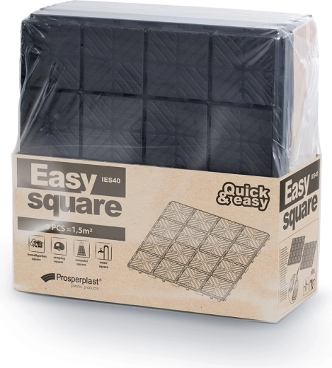 Dalles à emboîter de jardin EASY SQUARE 40 × 40 cm, noires (9 pcs, 1,5 m²)