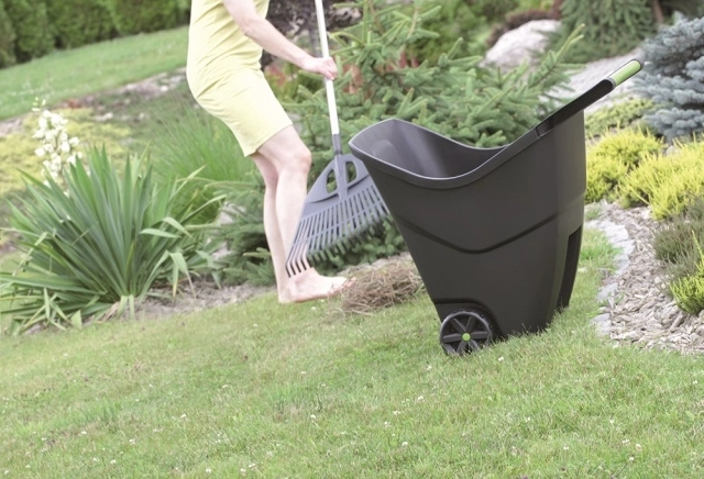 Les hautes parois et la forme de la cuve facilitent le chargement des feuilles, de la terre et des branches, accélérant les travaux au jardin.