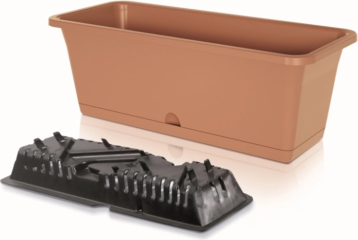 Jardinière pratique et élégante CAMELIA en couleur terracotta, idéale pour la culture de fleurs, d’herbes aromatiques et de petits arbustes sur les balcons, terrasses et au jardin. Fabriquée en plastique léger de qualité, résistant aux intempéries et facile à nettoyer. Avec un volume de 15,5 l, elle offre suffisamment d’espace pour une croissance saine des plantes et, grâce à ses dimensions, convient parfaitement aux rebords de fenêtre et garde-corps.