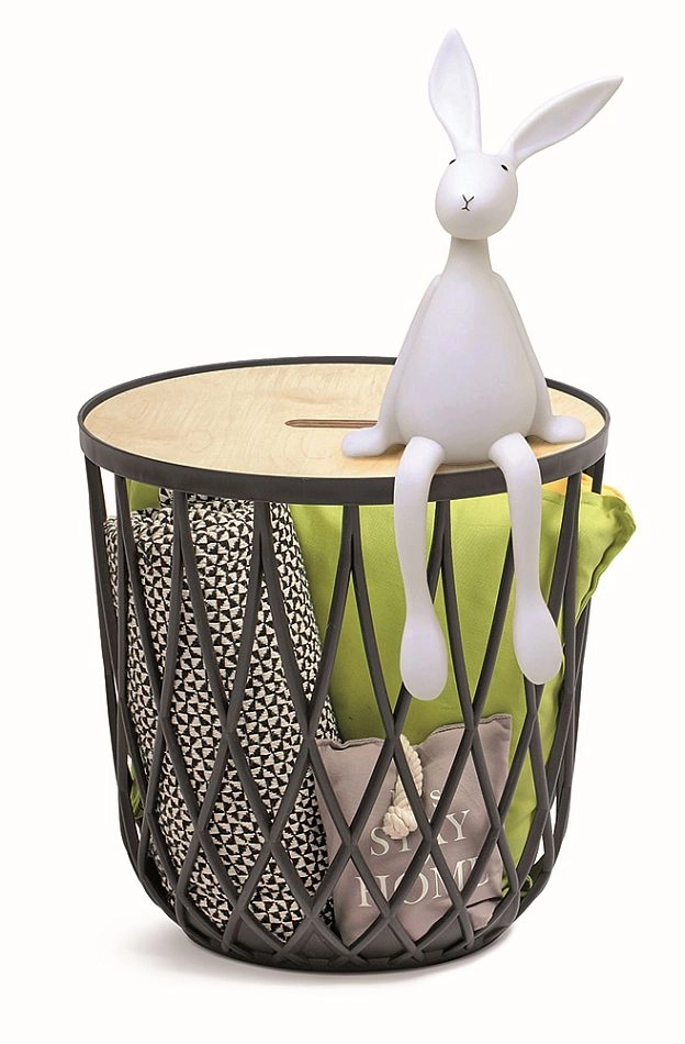 Fait office de panier de rangement élégant, d’accessoire design et de petite table basse ou de chevet.