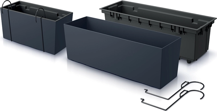 L’emballage comprend un insert amovible pour planter et arroser confortablement, ainsi que des crochets métalliques robustes pour une fixation sûre sur une rambarde ou une autre structure. Grâce à son faible poids, la jardinière se déplace facilement selon vos besoins et l’ensoleillement disponible.