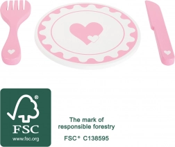 Ce petit service en bois est décoré de petits cœurs et est fabriqué à partir de bois certifié FSC® à 100%. Les enfants apprécieront non seulement son beau design, mais apprendront aussi quelque chose sur l'écologie et la durabilité.