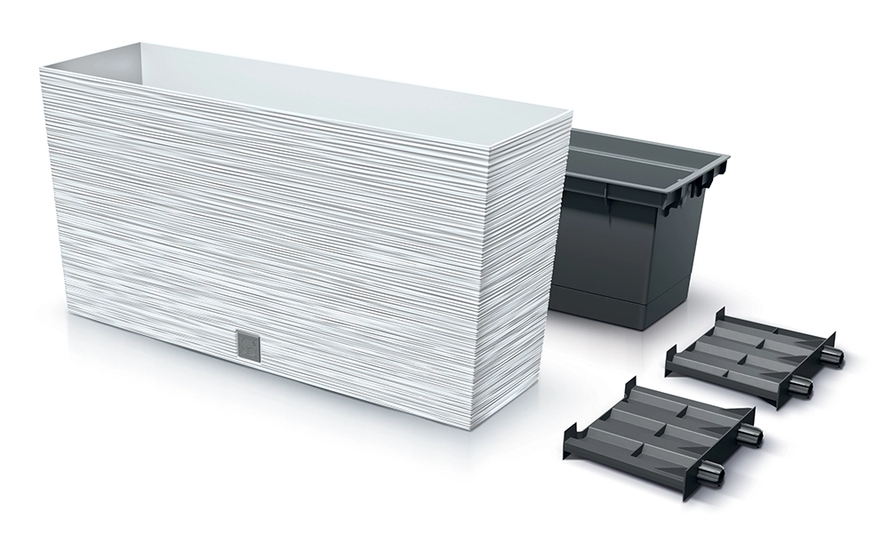 Elle inclut une cuvette intérieure pour un rempotage aisé et une manipulation plus propre, sans terre renversée. Son empreinte rectangulaire et sa conception autoportante permettent une installation facile sur rebord de fenêtre, sol ou mobilier de jardin.