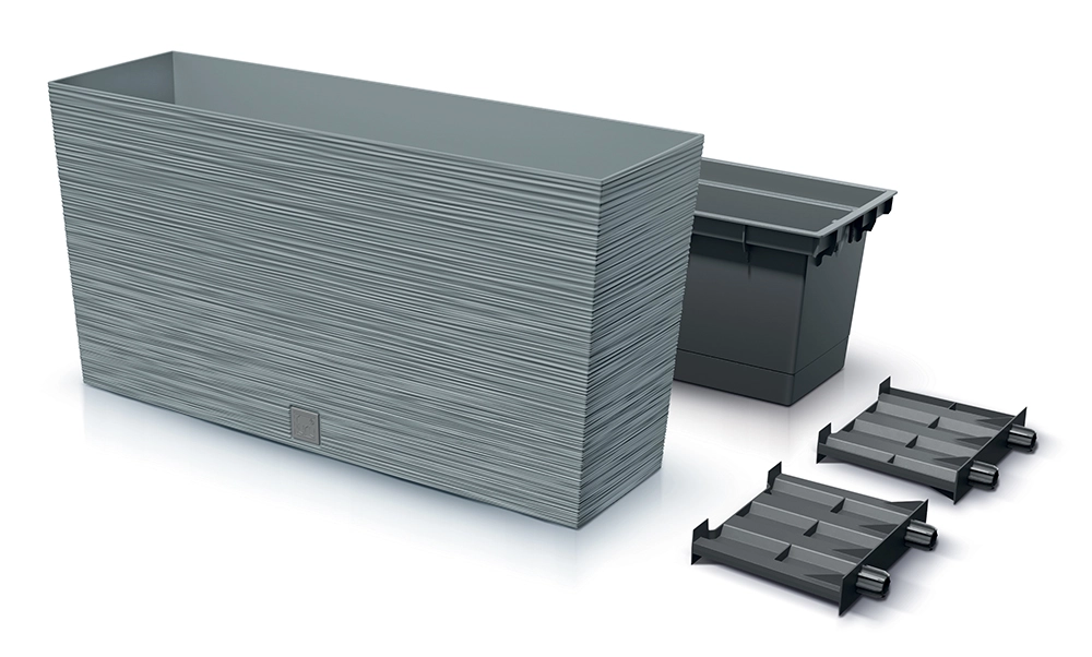 La texture horizontale discrète et la couleur gris béton se marient facilement avec un mobilier moderne comme avec des éléments naturels. La jardinière apporte une touche d’élégance au salon, au couloir, sur le balcon et la terrasse.