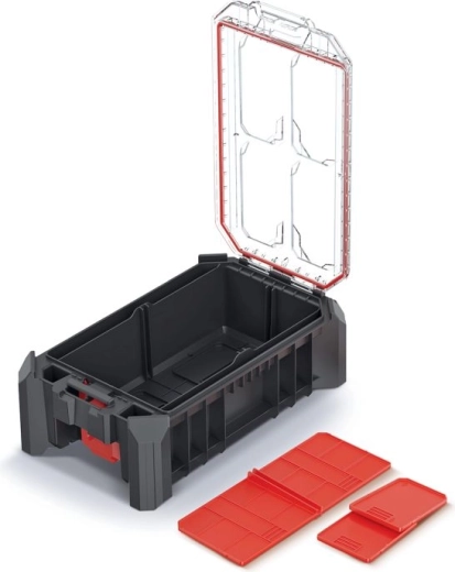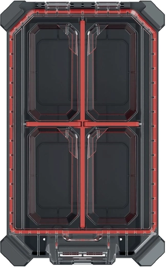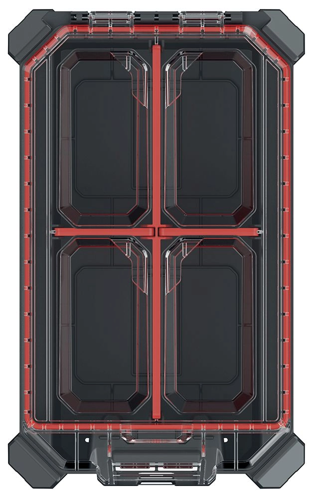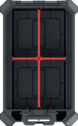 L’espace intérieur se personnalise facilement à l’aide de 3 cloisons amovibles. Les charnières métalliques accroissent la longévité, et la fermeture sécurisée est complétée par le système MSX d’emboîtement/empilage, qui permet de relier plusieurs organiseurs ensemble et d’économiser de la place lors du stockage et du transport.