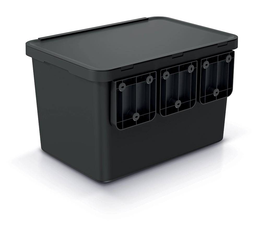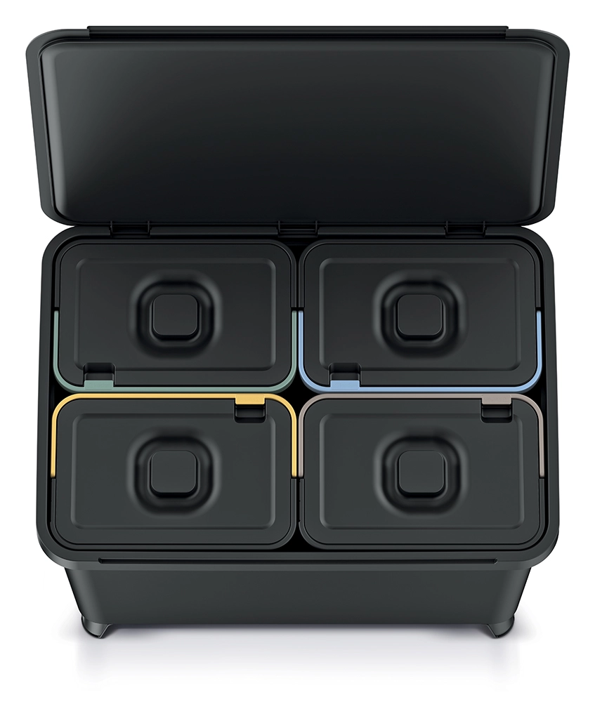 Le couvercle supérieur s’ouvre facilement et offre un accès clair à tous les compartiments. Le tri est ainsi rapide, hygiénique et sans désordre inutile.