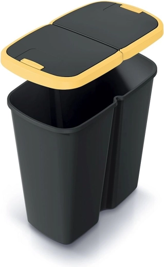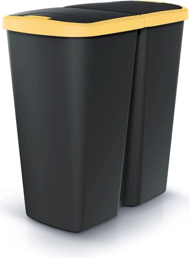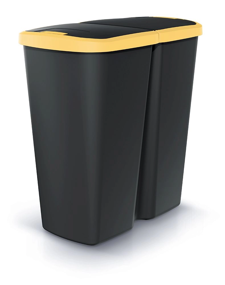 Poubelle pratique de 45 l avec double couvercle offrant un tri des déchets facile à la maison comme au bureau. Grâce à l’ouverture par bouton, la manipulation est confortable et hygiénique, tandis que le plastique résistant et les dimensions compactes assurent une longue durée de vie et un gain de place. Le couvercle jaune contrasté facilite la différenciation visuelle lors du tri.