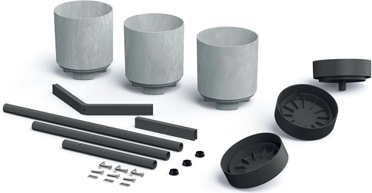 Ce support à plantes à trois niveaux est un choix idéal pour les plantes d’intérieur, herbes aromatiques et succulentes. La combinaison d’un cadre métallique robuste et de cache-pots en plastique légers et faciles à nettoyer, dans un gris neutre, s’intègre aux intérieurs modernes comme minimalistes. Grâce à ses dimensions compactes, il exploite efficacement l’espace sur le balcon, la terrasse ou dans le salon.