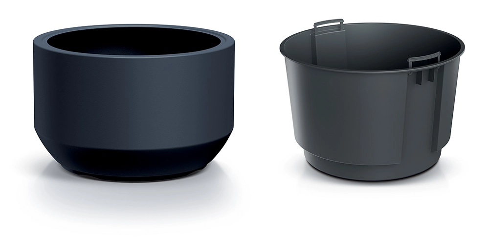 L’insert amovible avec éléments de drainage simplifie l’entretien des plantes, prévient le sur-arrosage et permet un entretien rapide.