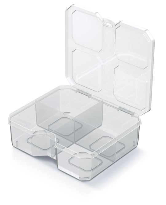 Organiseur SQR box 15,6 × 14 × 5 cm, transparent, 4 compartiments