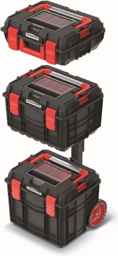 Pratique ensemble de trois valises modulaires pour outils de la marque Prosperplast, offrant une construction robuste, un joint étanche à l’eau et à la poussière et un organiseur transparent pour les petites pièces. Grâce à leur connexion facile en un seul bloc et à leurs charnières métalliques, elles sont idéales pour les bricoleurs souhaitant tout ranger de manière claire et sécurisée.