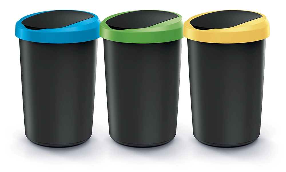Le set de poubelles Compacta R Flap est un choix idéal pour un tri des déchets efficace et clair. Trois conteneurs séparés de 40 litres permettent de répartir aisément le papier, le verre et les plastiques, tandis que les couvercles codés couleur facilitent l’orientation de toute la famille ou des collègues.