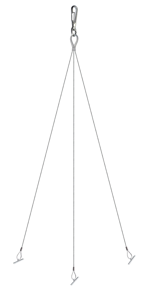 - Accrochage sécurisé – trois câbles en acier répartissent le poids de manière uniforme.