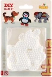 Le kit Hama de plaques pour perles à repasser permet aux enfants dès 5 ans de créer des images colorées grâce aux plaques en plastique blanc en forme d'éléphant, de pingouin et de chien.