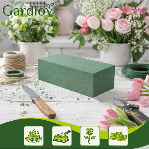 Créez des décorations florales stables qui restent belles plus longtemps. La mousse florale humide GARDLOV, une fois correctement imbibée d’eau, hydrate progressivement les fleurs fraîches tout en fixant les tiges selon l’angle choisi. Les dimensions 23 × 11 × 8 cm conviennent aux récipients courants et peuvent être facilement ajustées au couteau.