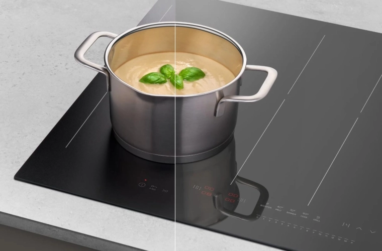 La plaque reconnaît automatiquement les récipients plus grands et relie deux zones de cuisson en une seule. Cuisinez confortablement en grand avec une répartition uniforme de la chaleur.