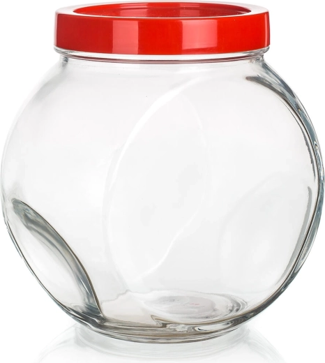 Ce bocal polyvalent convient aux pâtes, au riz, aux légumineuses, à la farine, au café ainsi qu’aux fruits secs. La transparence améliore l’orientation en cuisine, tandis que le couvercle rouge apporte une touche moderne et joyeuse.