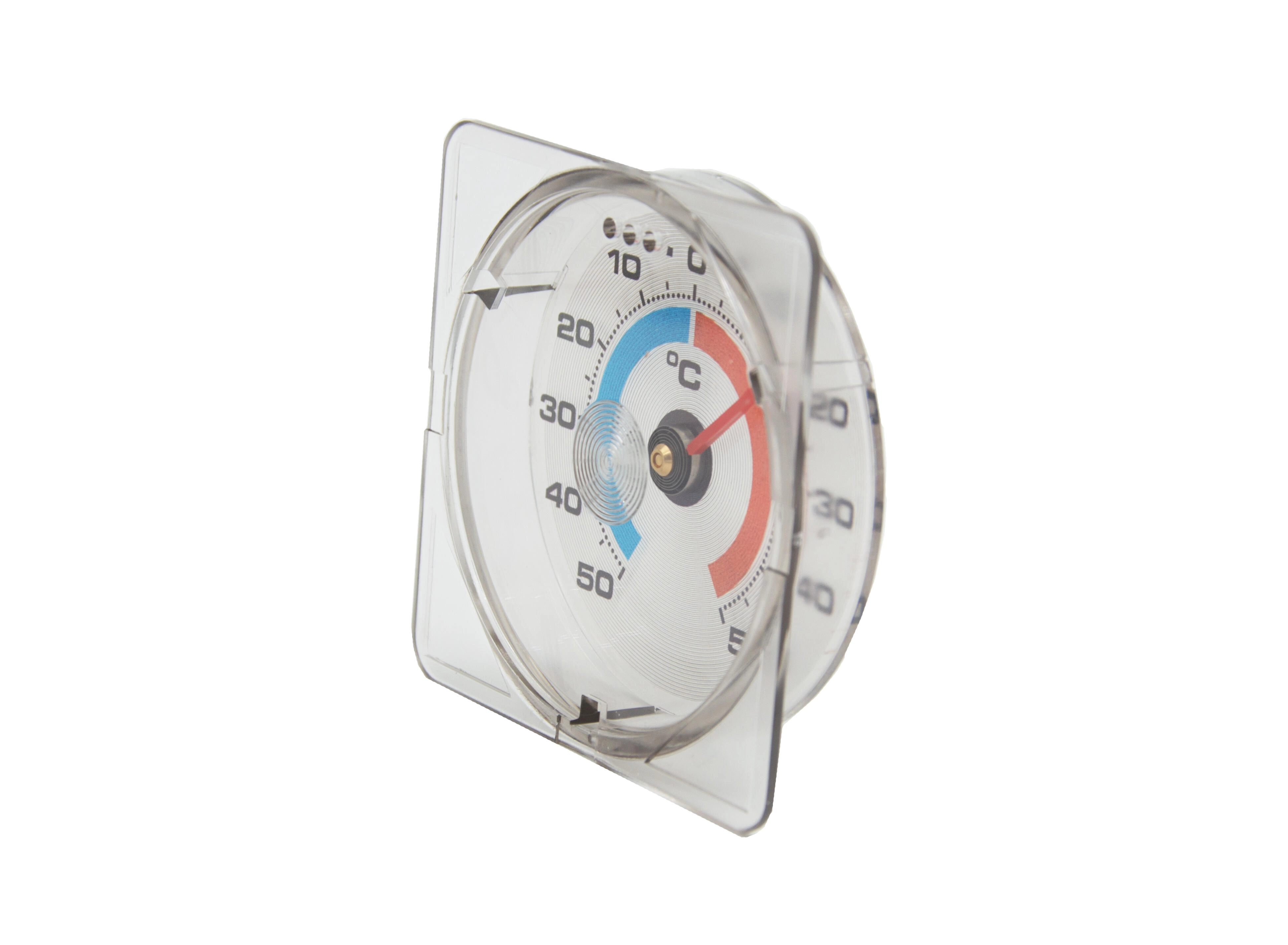 Thermomètre de fenêtre pratique pour une utilisation extérieure avec échelle lisible et pastille autocollante pour une installation facile. Offre une plage de mesure de -50 à +50 °C, des dimensions compactes de 7×7 cm et une construction légère en plastique pour une longue durée de vie.