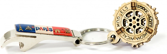 Porte-clés léger en bois avec trou pour anneau – faites tourner une roue et l’autre s’anime toute seule. Un accessoire stylé pour clés ou sac à dos.