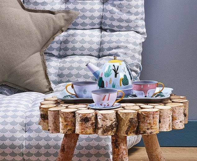 Un grand plateau de service, des tasses avec soucoupes et des assiettes à dessert permettent aux enfants de recevoir famille et amis comme de vrais pros.