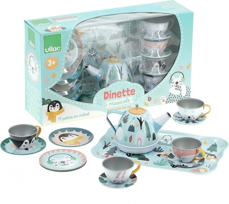 vilac set de thé musical pour enfants michelle carlslund, métal, 14 pièces