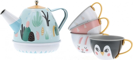 Ce set de thé en métal de qualité ravira tous les petits hôtes et hôtesses. À l’intérieur de la théière, un mécanisme musical à remontoir se met à jouer une agréable mélodie lorsqu’on l’incline, transformant chaque service du thé en un petit cérémonial. Les couleurs pastel, les motifs d’animaux adorables et les lignes épurées font de cet ensemble un joli cadeau et un accessoire déco pour la chambre d’enfant.