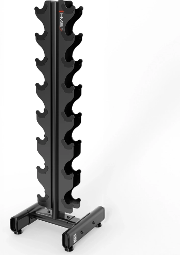 La conception en tour permet de ranger jusqu’à 8 paires d’haltères sur une empreinte minimale et de garder la zone d’entraînement bien ordonnée.