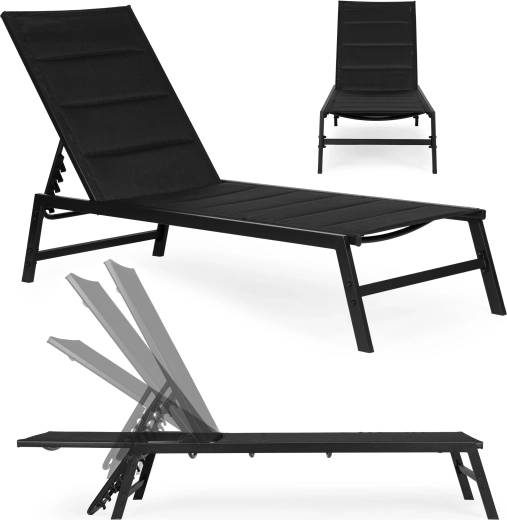 Chaise longue de jardin avec dossier réglable en acier, noire, MultiGarden